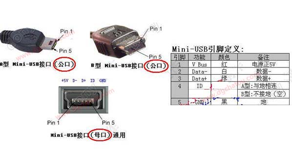 其中ID腳在OTG功能中才使用。由于Mini-USB接口分Mini-A、B和AB接口。