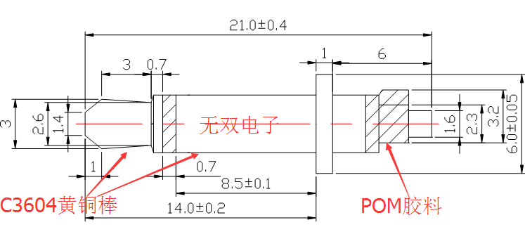 產品描述:3.5*26.0單聲道6.0盤插針,黑膠/白膠及其它顏色,鍍層為鎳或金.