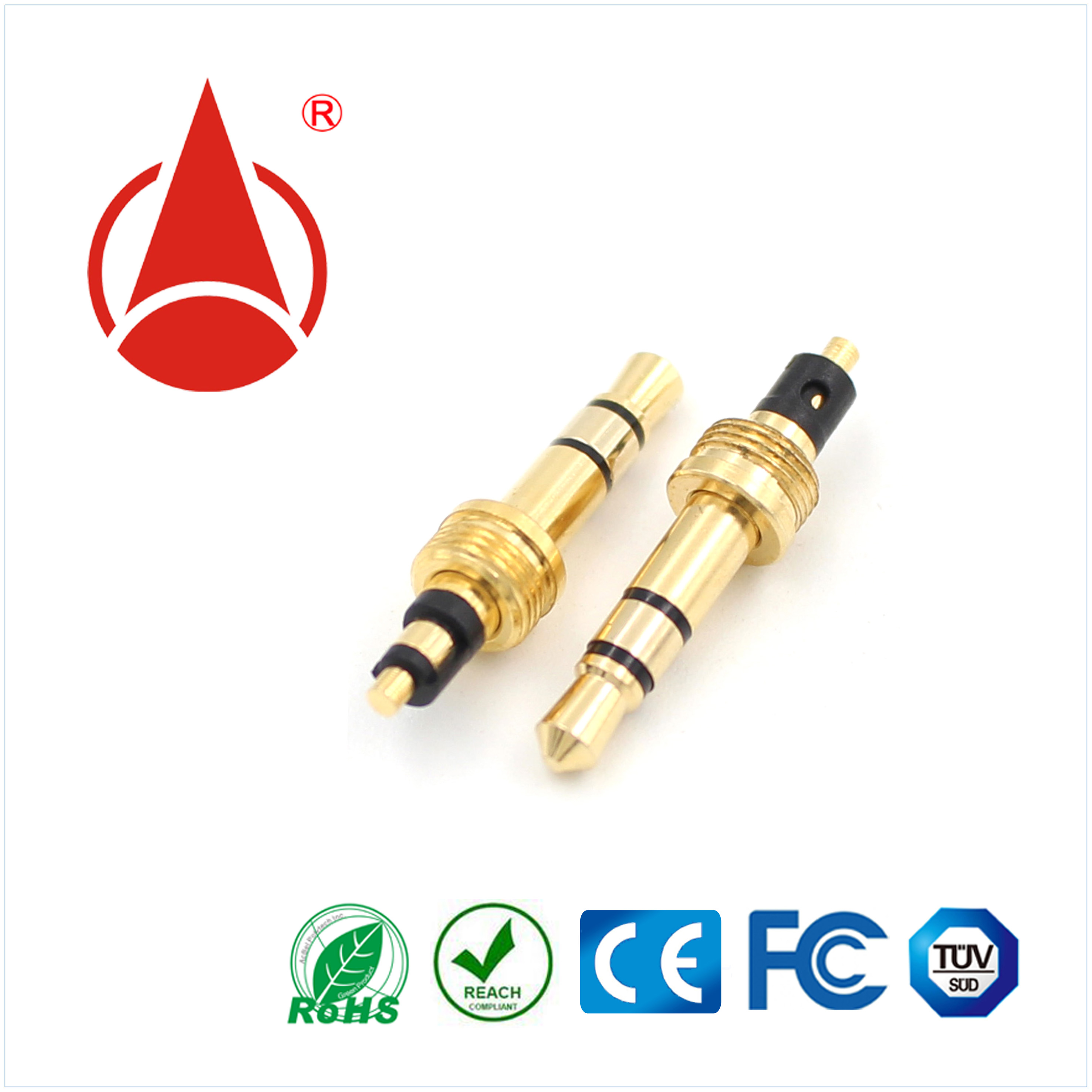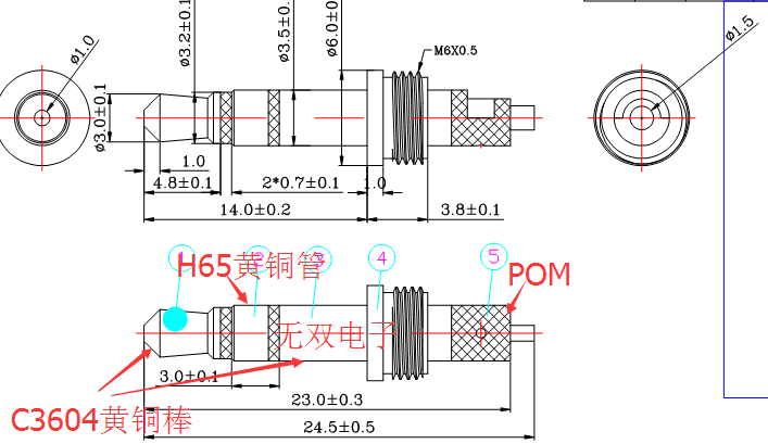 產品描述:3.5*24.5立體聲6.0盤插針,黑膠/白膠及其它顏色,鍍層為鎳或金.