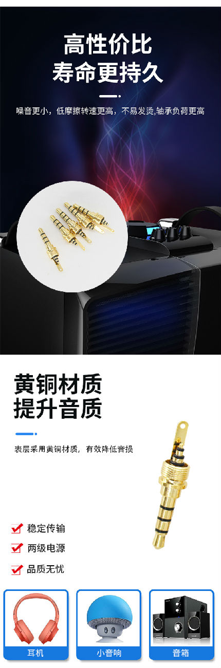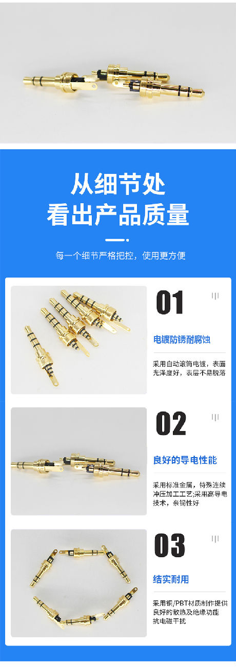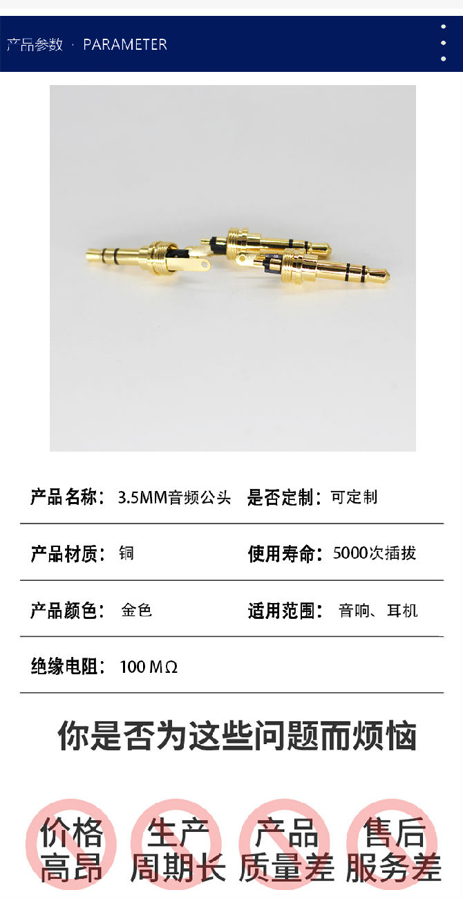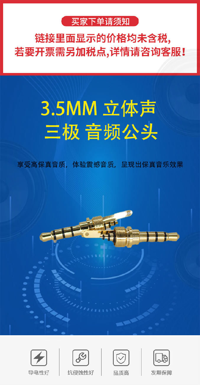 3.5立體聲音頻插針魚尾設(shè)計(jì)方便焊線