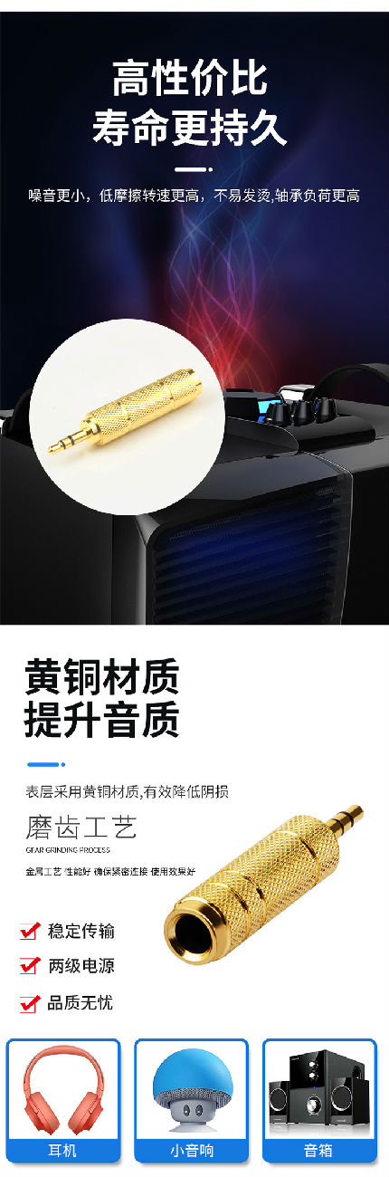 3.5MM立體聲音頻線插頭三極耳機插針焊...